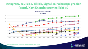 Voor merken is hier een duidelijke les uit te trekken: niet elk platform groeit automatisch mee. Het draait om strategische keuzes: waar is jouw doelgroep écht actief en welke content werkt daar? Door te investeren in groeiende platforms zoals Instagram, terwijl je stagnerende kanalen gericht inzet voor specifieke doelgroepen, kun je impactvolle en relevante communicatie realiseren.